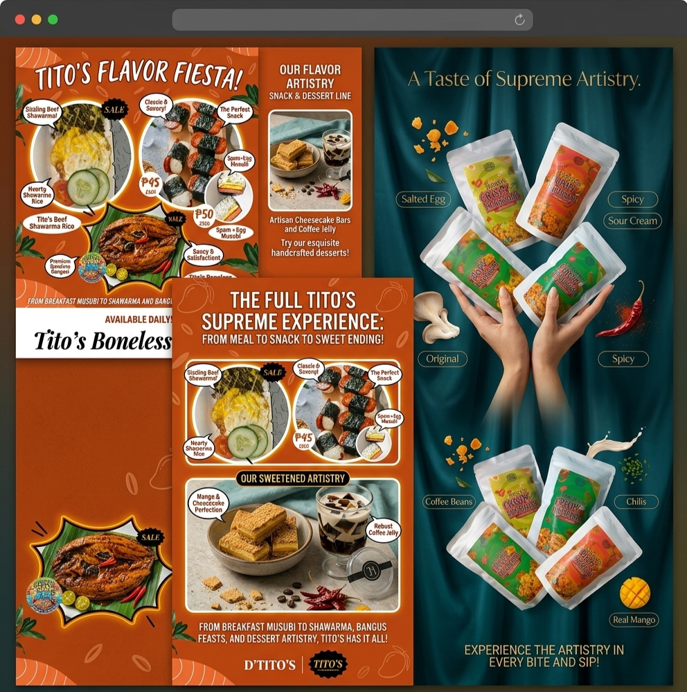 Welcome to Tito Supremacy, your new favorite spot for delicious eats and good vibes! We’re all about bringing you those comforting, home-style flavors that remind you of family gatherings. Come hang out with your barkada and discover your next favorite snack. We can’t wait to serve you!
